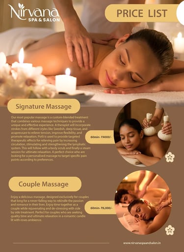 Contact Nirvana Spa & Salon for a personalized massage experience that soothes your body and mind.