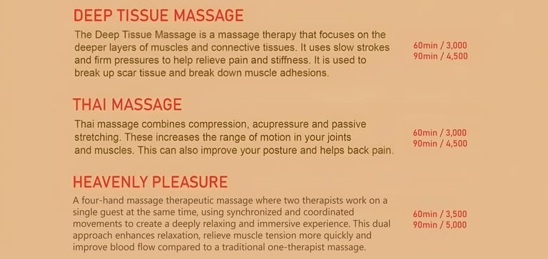 Release deep tension, restore muscle strength and revive your body with our powerful deep tissue massage.